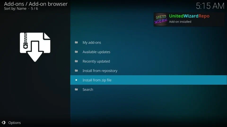 13. Wait for the United Wizard Repository Add-on installed confirmation, which will appear in the upper-right corner of the screen. It shouldn’t take more than a minute.