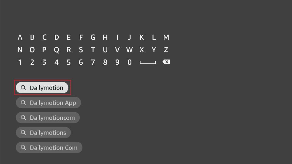 3. Use your remote control to enter “Dailymotion” in the search bar.