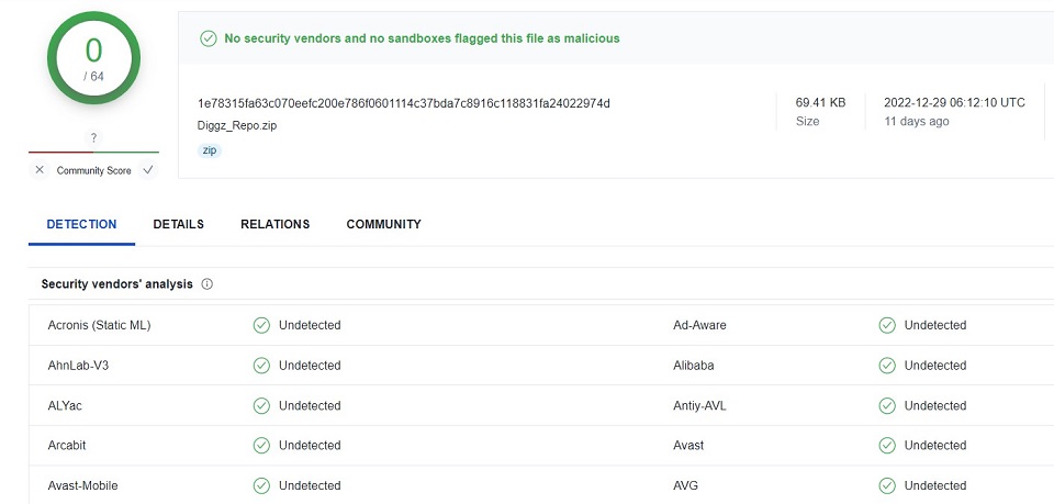 I can only vouch for the basic level of safety as I didn’t find anything suspicious when I used one of the Diggz Chef Wizard Kodi builds. Also, here’s the report of the virus analysis I performed on the zip file of Diggz Chef Wizard: