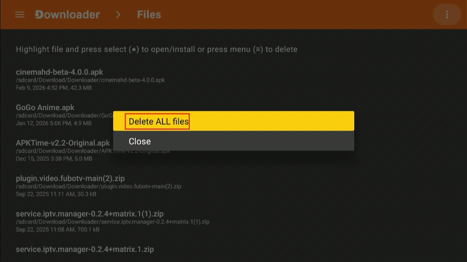 Another notable feature added to the new app version is the Delete All Files function, which clears all installed files at once. In the older Downloader app, you could only delete a single file at a time. While most users delete files during the sideloading process after installing the app, the new bulk-deletion feature will save you time in case you skip the step and files accumulate.