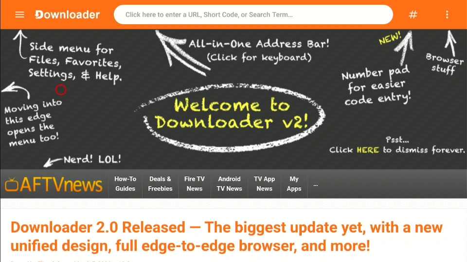 After years with no major upgrades, popular Android utility app Downloader by AFTVNews has rolled out a major update. The new version, Downloader V2.0, features an improved user interface and performance, including a larger built-in web browser, a redesigned UI, a smoother cursor, and a number pad for shortcodes.
