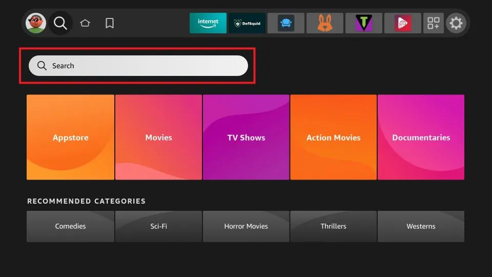 Step 2: Power ON your Fire TV Stick and go to Find, followed by the Search option.