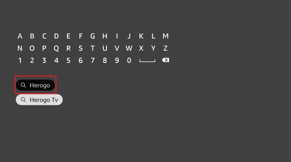 3. On the search screen, use the on-screen keyboard and type Herogo. Then, scroll down and select it from the list of searches.