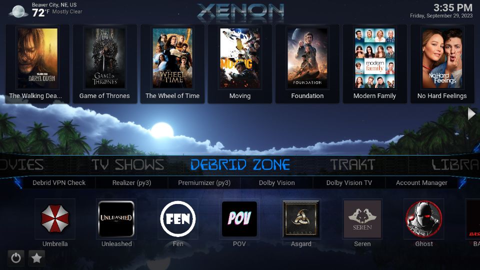 This is what Kodi looks like after installing a trendy build called Xenon.