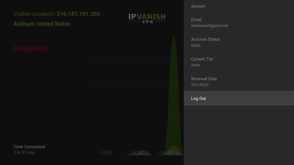 10. If you’re still using your FireStick but you’re done using IPVanish, go to the IPVanish app and Disconnect to return to your standard connection. Keep in mind that this may expose your IP address once again.