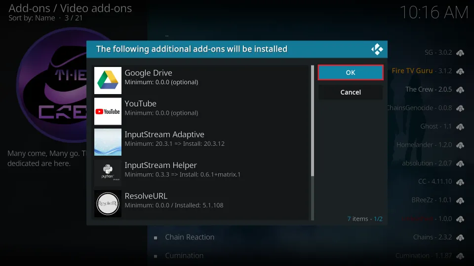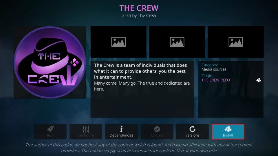 Follow these steps to install the Crew addon on Kodi to watch movies, shows, live TV, and other videos: