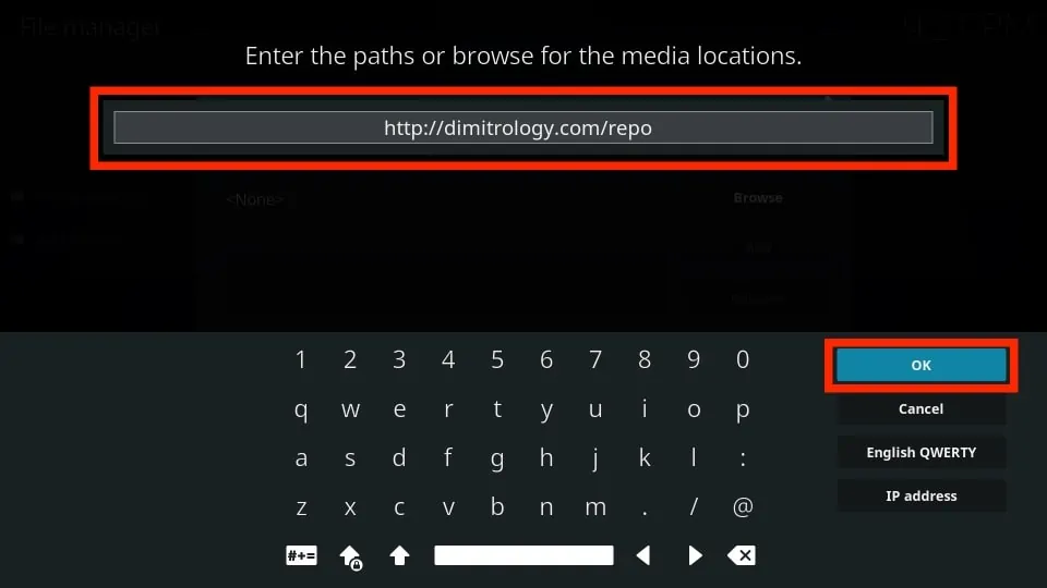 5. The text field will now let you type or paste the source link. Type or paste http://dimitrology.com/repo into the field and click OK.